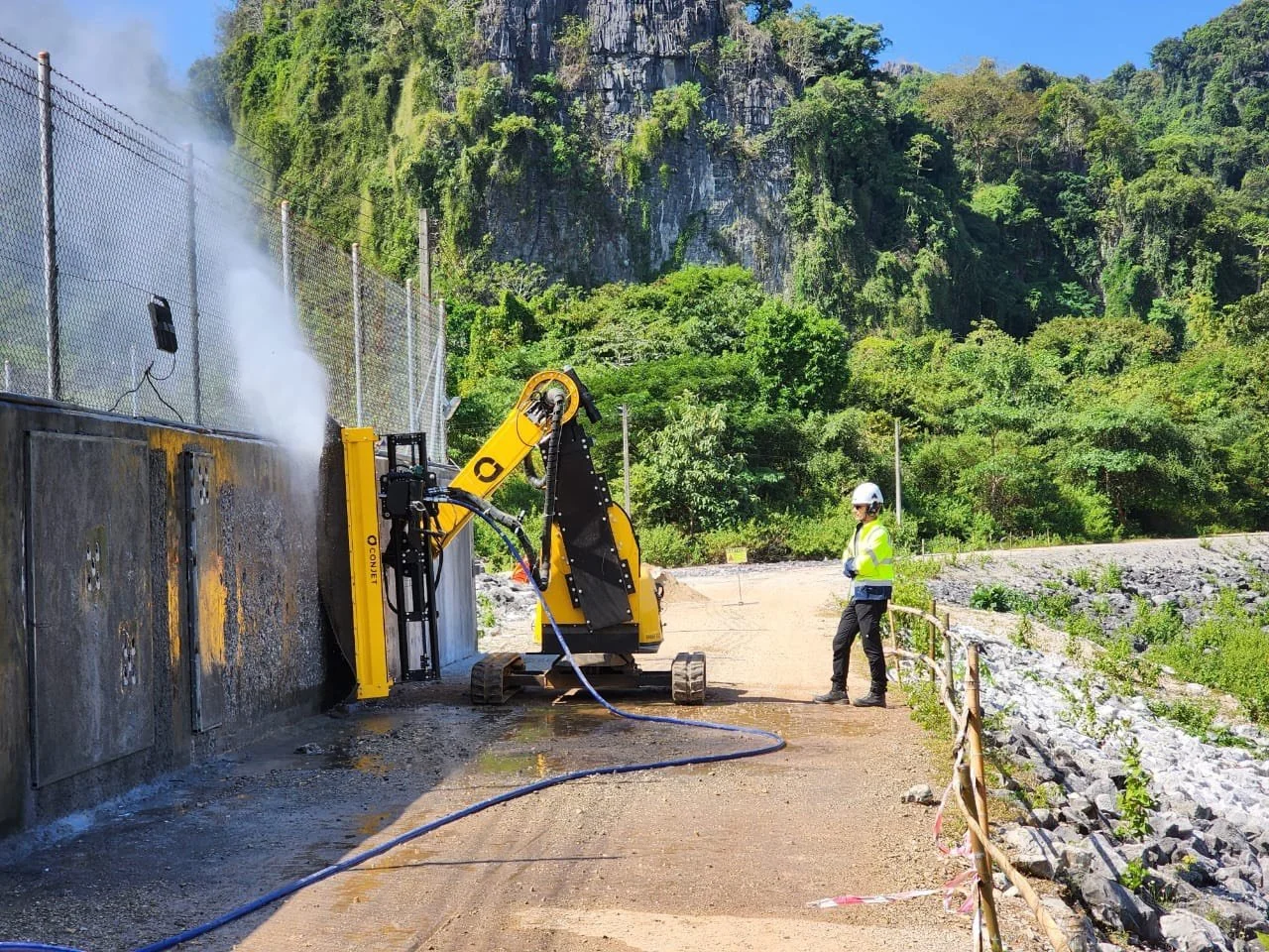 Robotic Concrete Hydro-Demolition delivering precise, safe, and controlled concrete removal for Power, Hydro, and Mining facilities with superior productivity and zero structural impact.