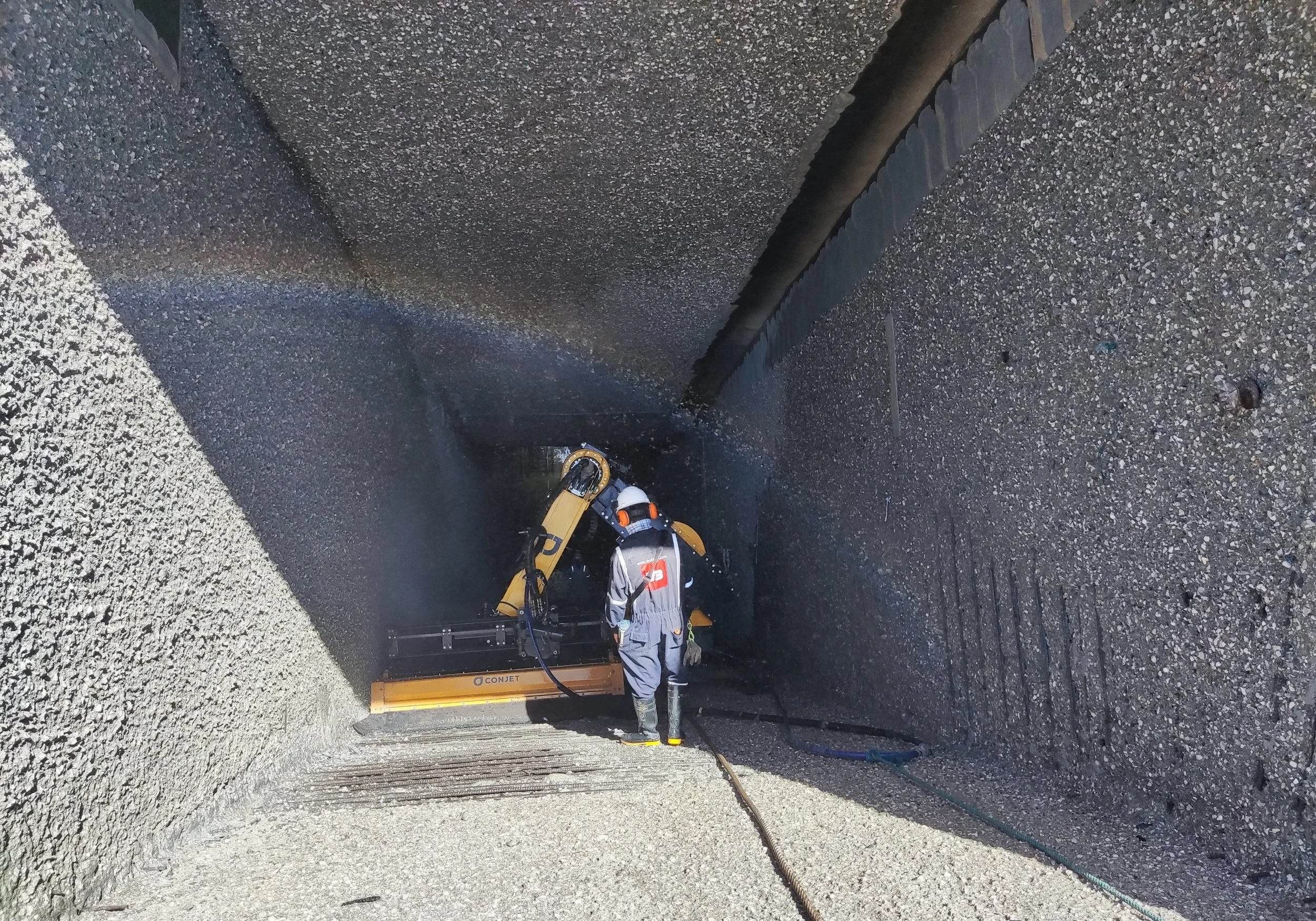 Performed robotic high-pressure hydro-demolition removing deteriorated concrete while preserving structural integrity at hydropower facilities.